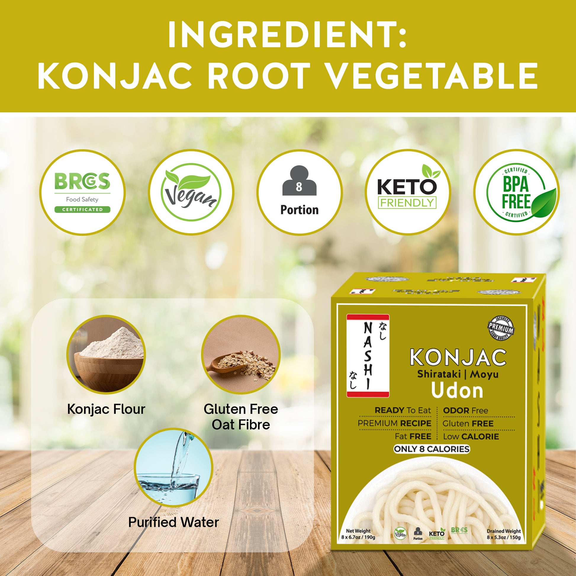 Nashi Konjac Shirataki Premium Udon Noodles (8×190g)